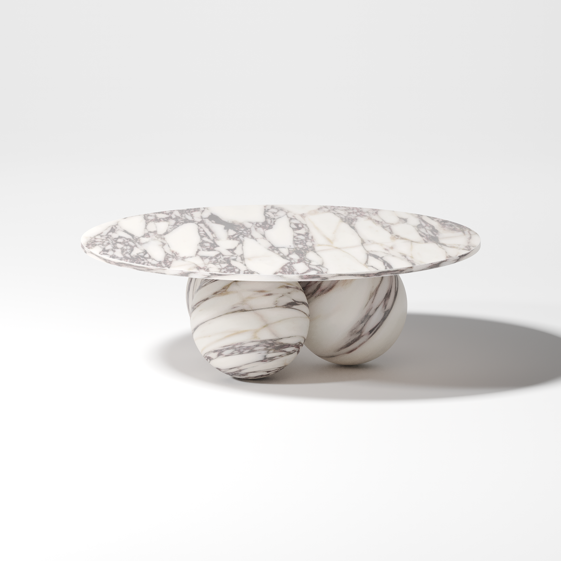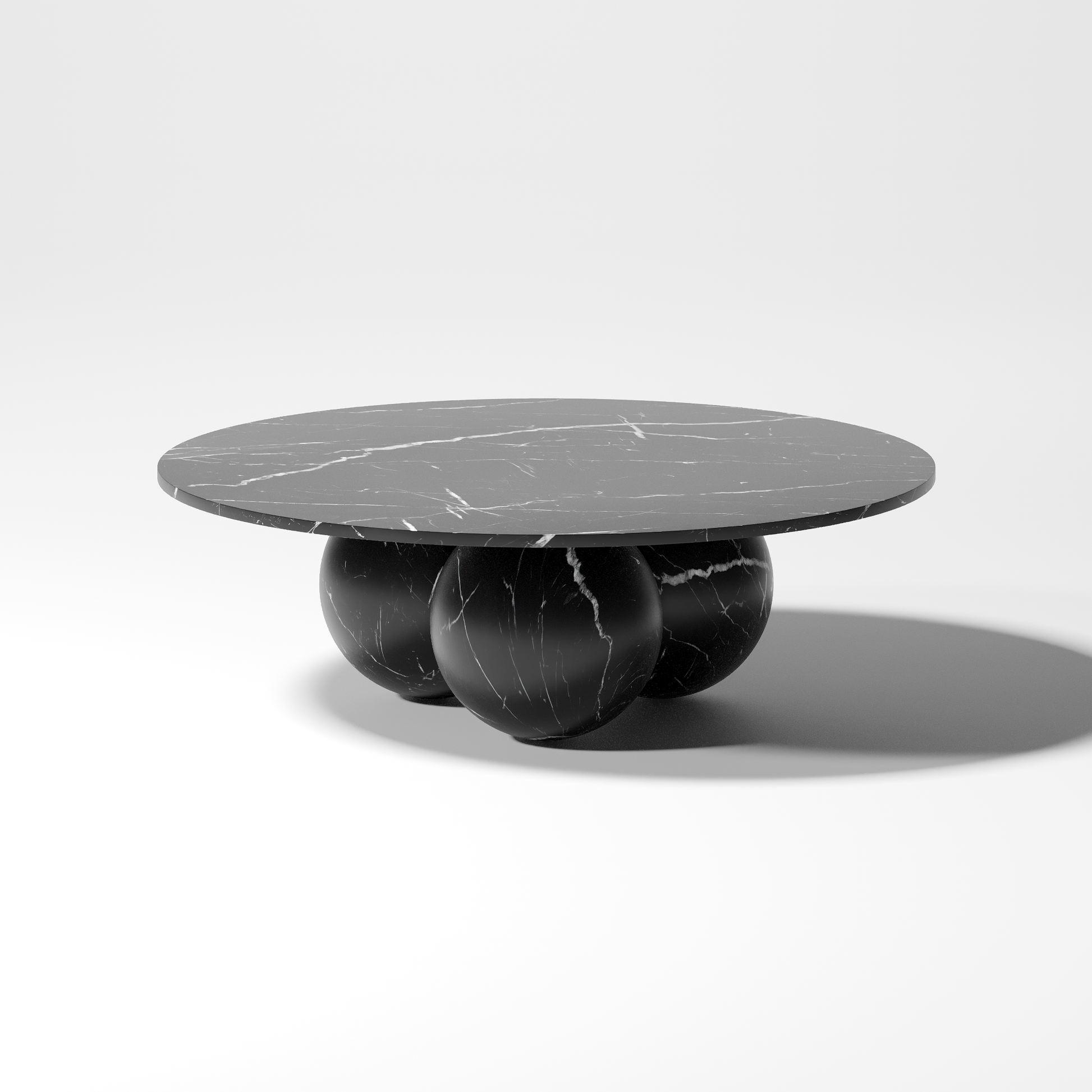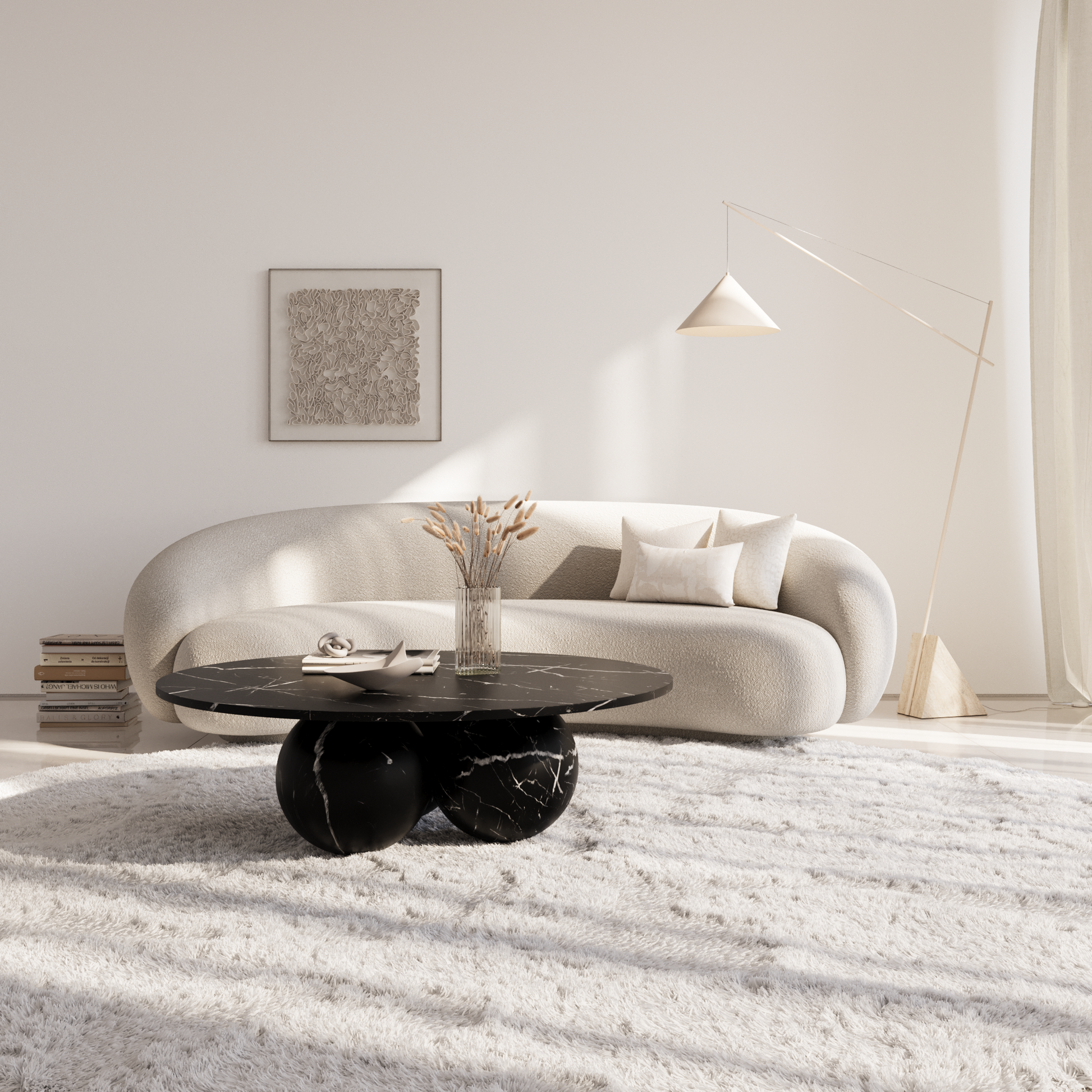The SOLACE Coffee Table offers a stunning addition to any living space. Made-to-order from luxurious marble or travertine, this round table top elegantly rests on three solid natural stone spheres. With its unique design, it serves as a showpiece with the option to position the spheres as a cluster or spaced apart depending on your style.